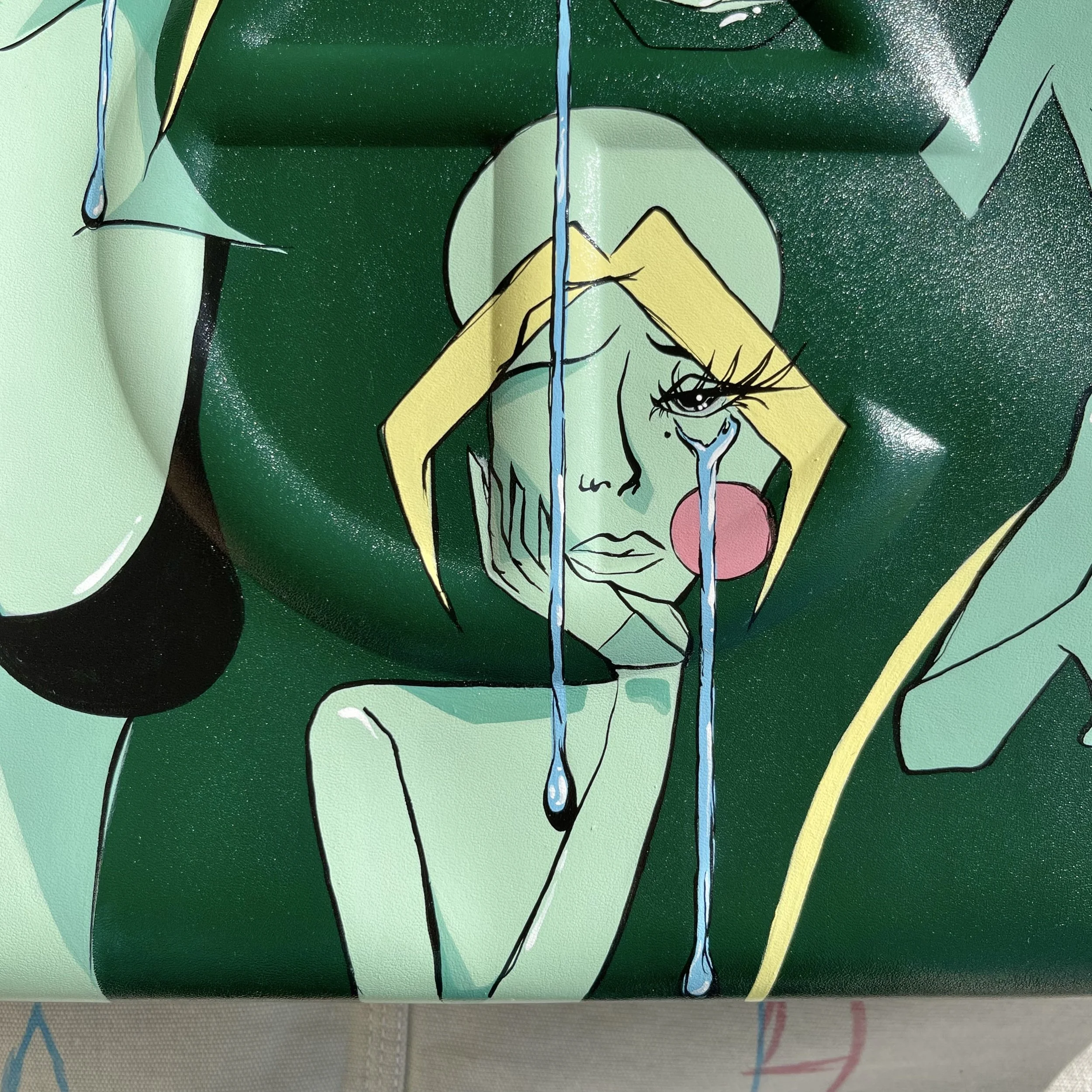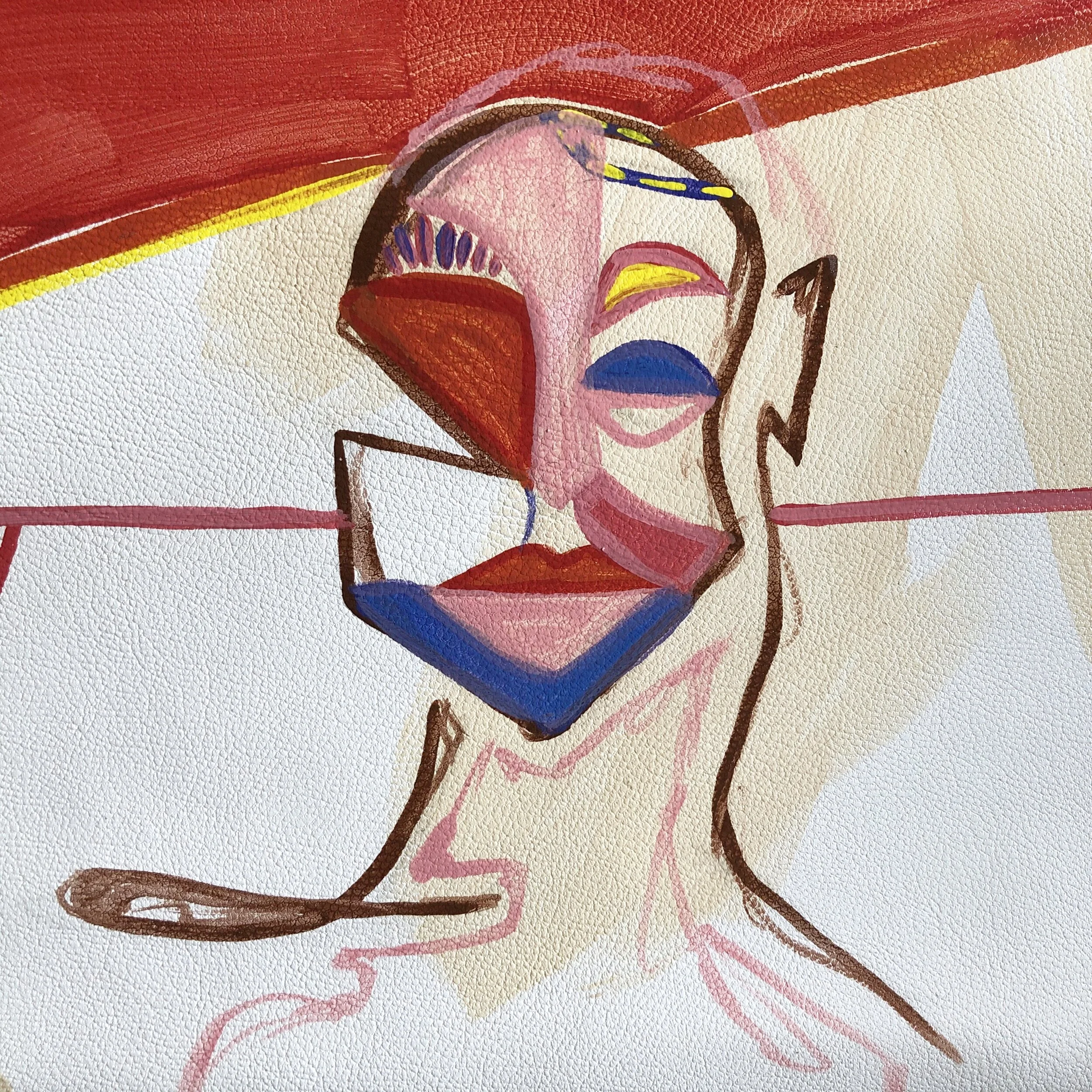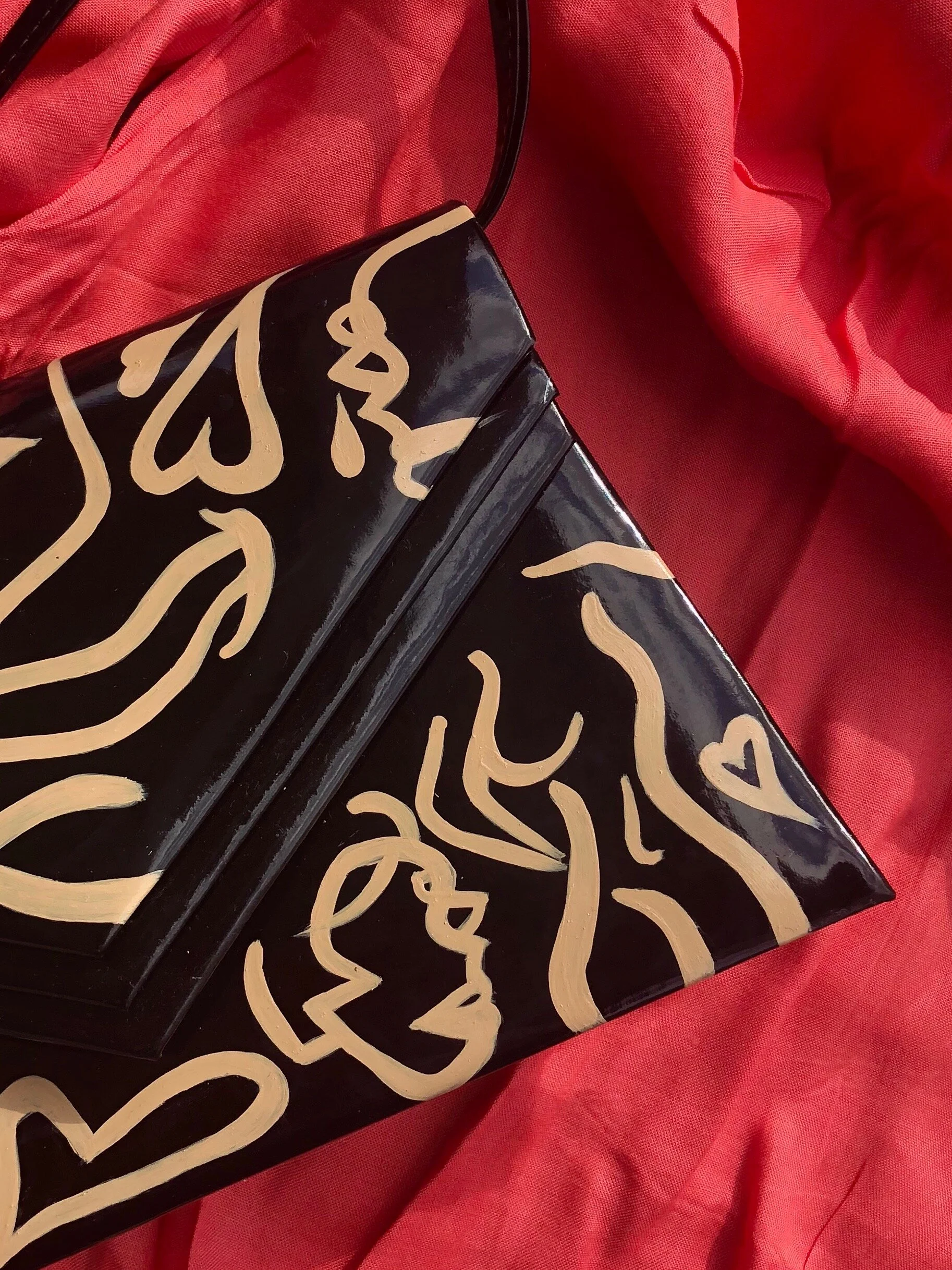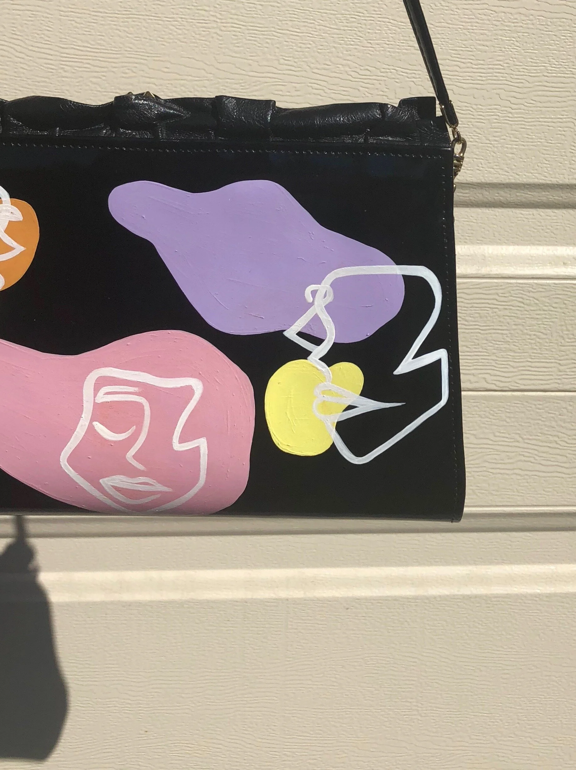 Inspired by Pablo Picasso’s Les Demoiselles d'Avignon (1907), this piece focuses on looser paint strokes and layering. The colours were inspired from the famous painting as well as the eye shape and anatomy. While the majority of my work thus far has concentrated on fine lines and clean edges, this artwork on this purse was the opposite. I wanted my lines to feel more organic instead of losing that in the process of perfection. From the process to its finish, this project is one of favourites and closer to what I want to create in the future.