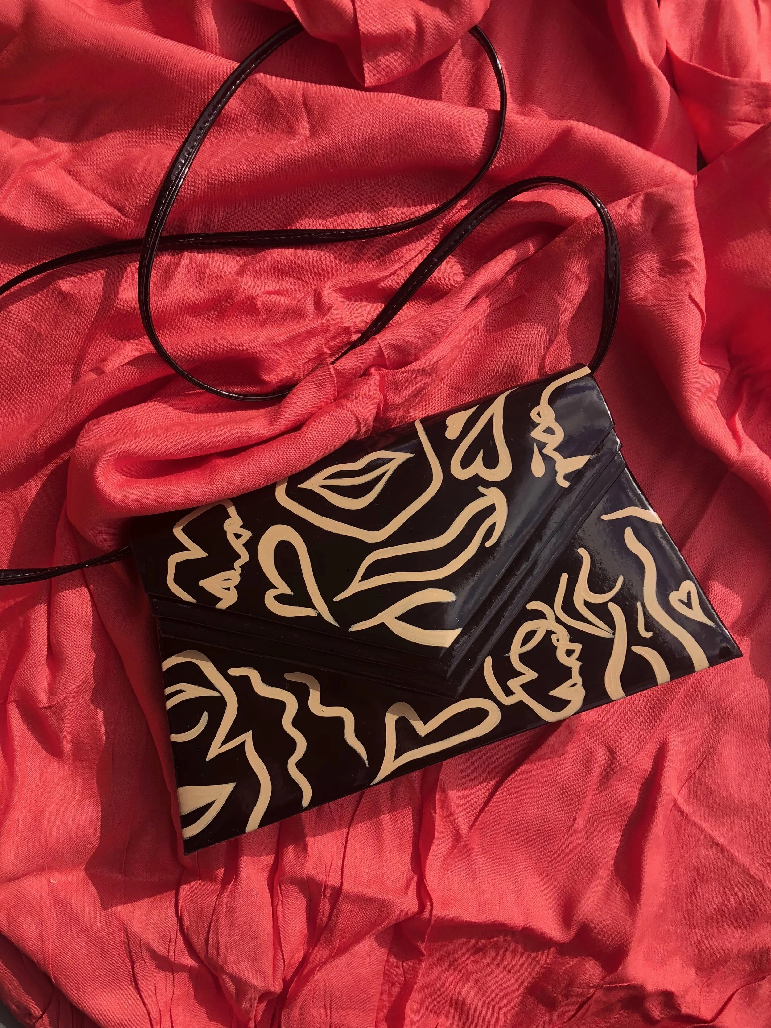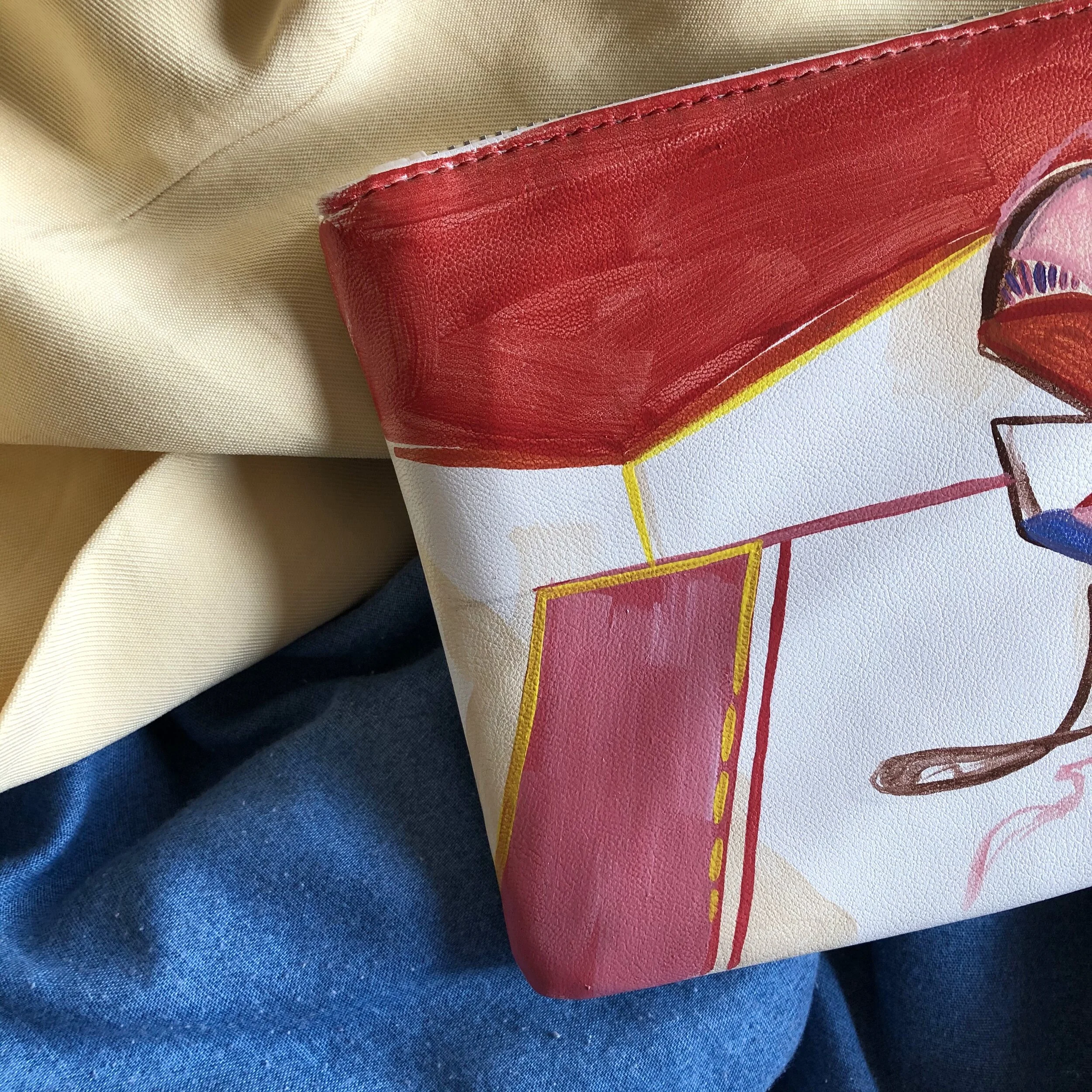 Vegan leather clutch painted with acrylic paint and sealed twice.