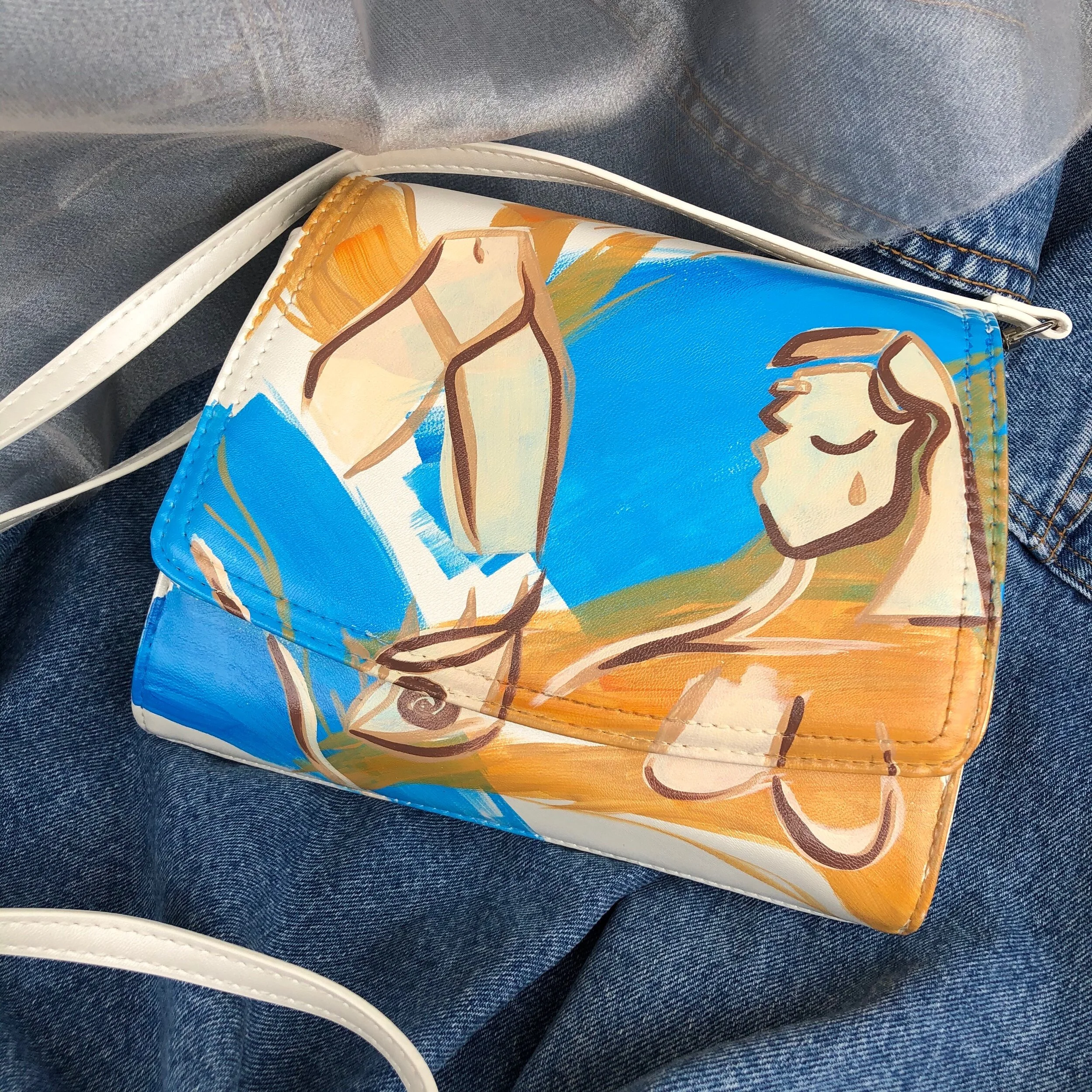 Vegan leather mini bag painted with acrylic paint and sealed twice.