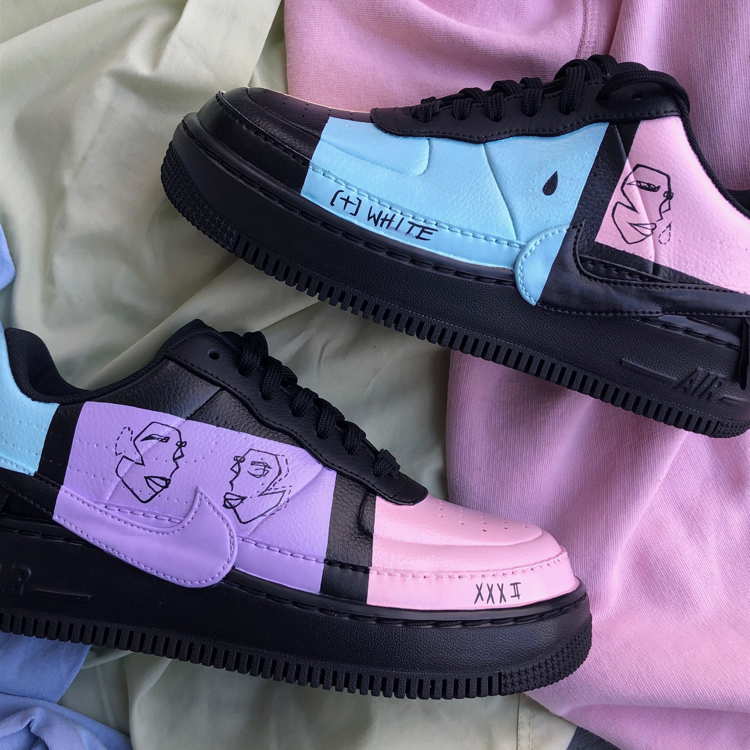 (PAIR XXX // Negative Space, Huney, July 2019, Acrylic on Nike Jester Air Force Ones)