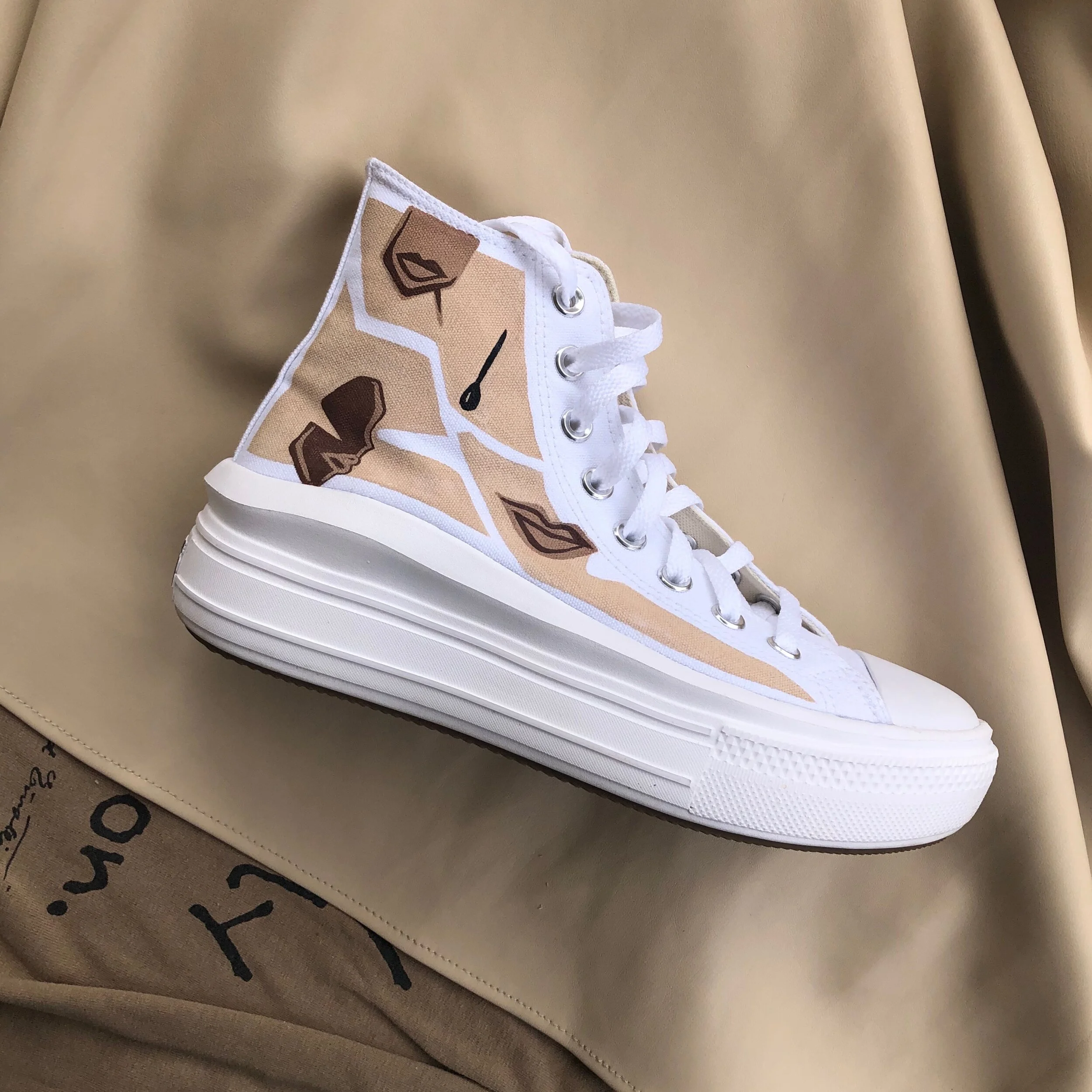 This 3 pair commission inspired me to experiment with techniques other than my regular style. From the rustic colour way to the illustration placement, these Chucks represent the thrill of infatuation and budding feelings. The colours, text and symbols are inspired by the musical collab between Virginia to Vegas and NOTD in their new single called “Malibu”.