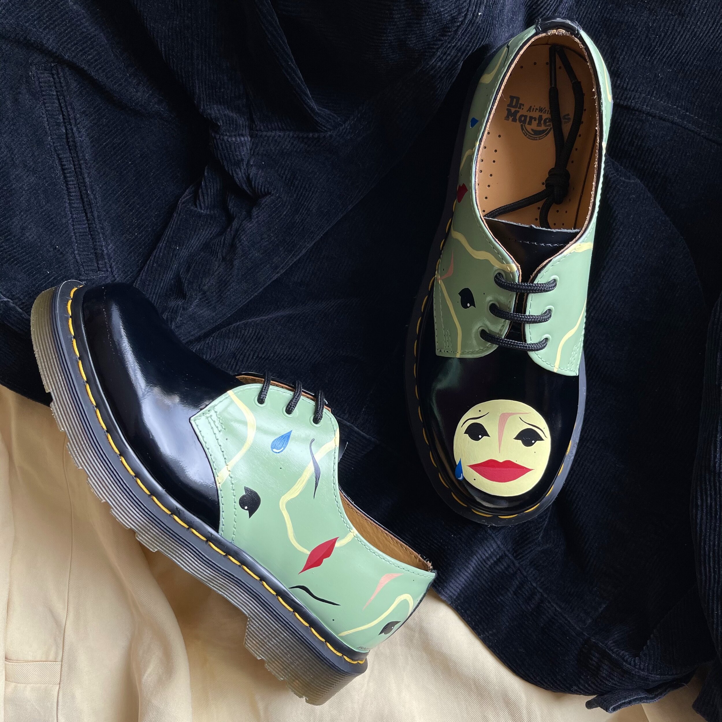 (Floating Portrait, Huney, April 2021, Acrylic on Doc Martens 1461 shoes)